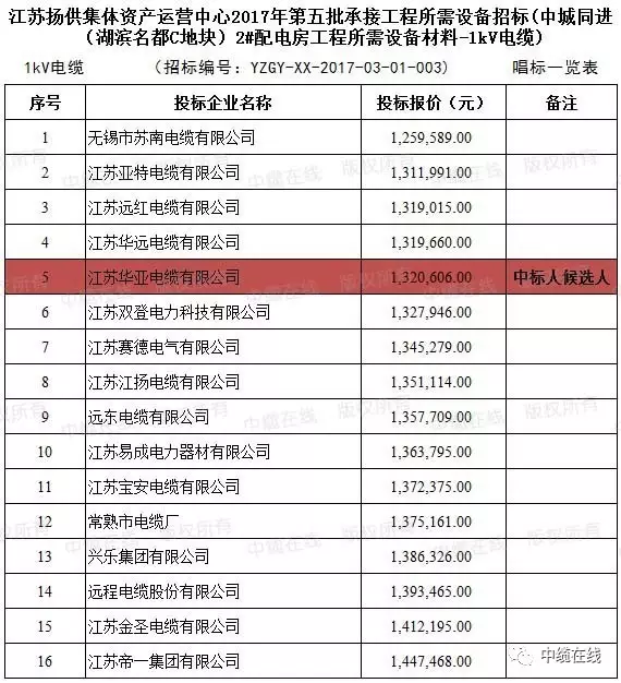中標(biāo)候選人:江蘇華亞電纜有限公司